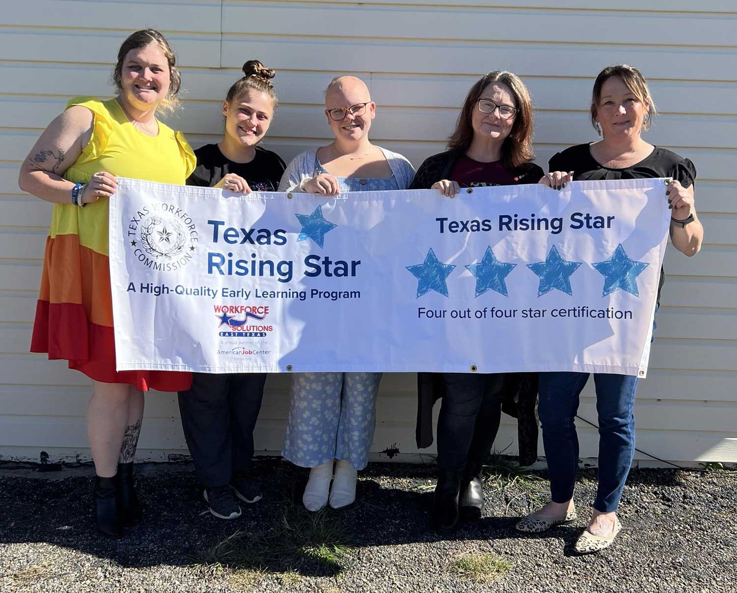 The Texas Rising Star program is “a voluntary, quality-based child care rating system of child care providers participating in the Texas Workforce commission’s subsidized child care program. TRS Certification is available to Licensed Center and Licensed and Registered Child Care Home providers who meet the certification criteria. The TRS Provider certification system offers three levels of certification (Two-Star, Three-Star, and Four-Star) to encourage providers to attain progressively higher certification requirements leading to a Four-Star level” (About TRS). ABC Son Shine School is a Four-Star Certified Texas Rising Star Child Care Provider.